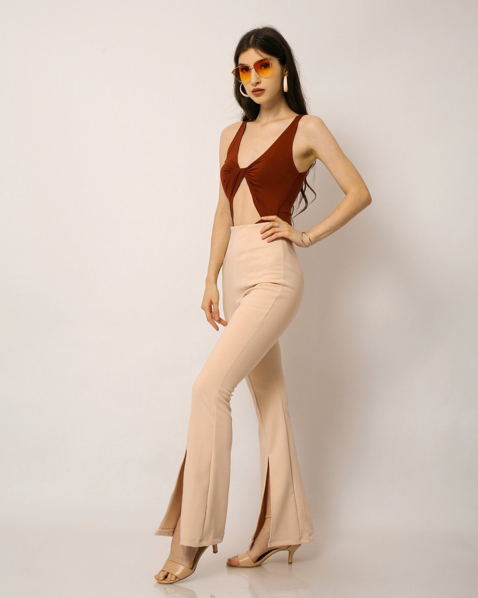 Concealed zip on back, Slit on front hemlines, Bodycon fit above knees, Flared below knees, Stretchable.