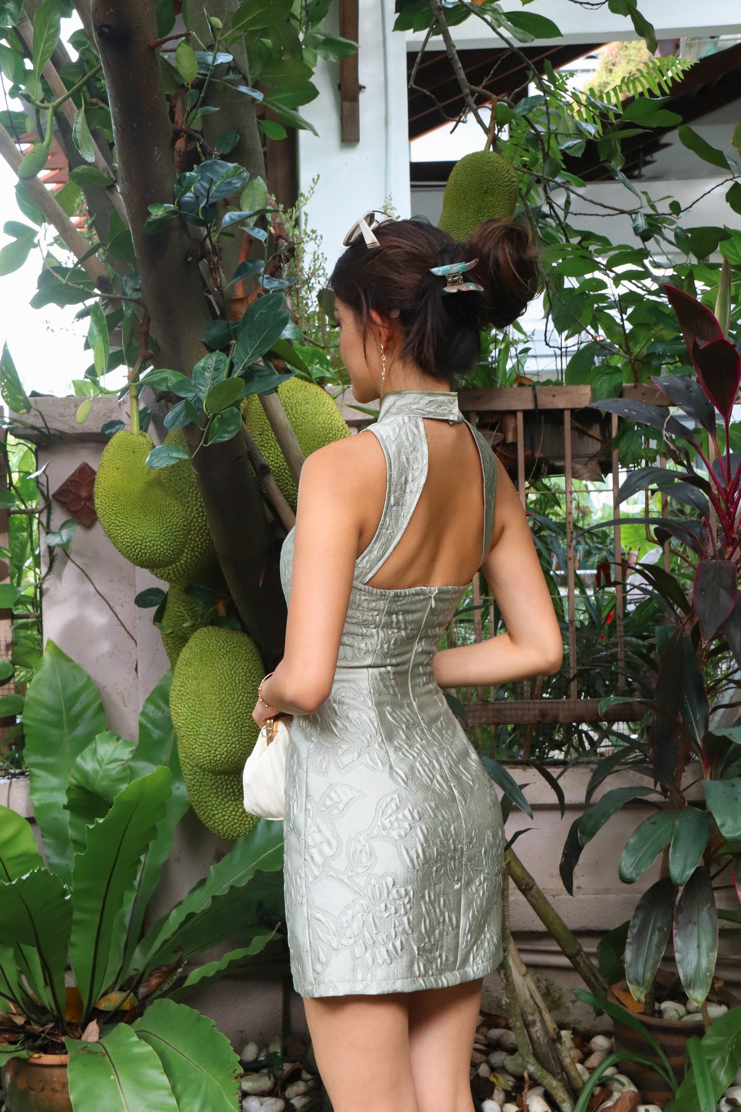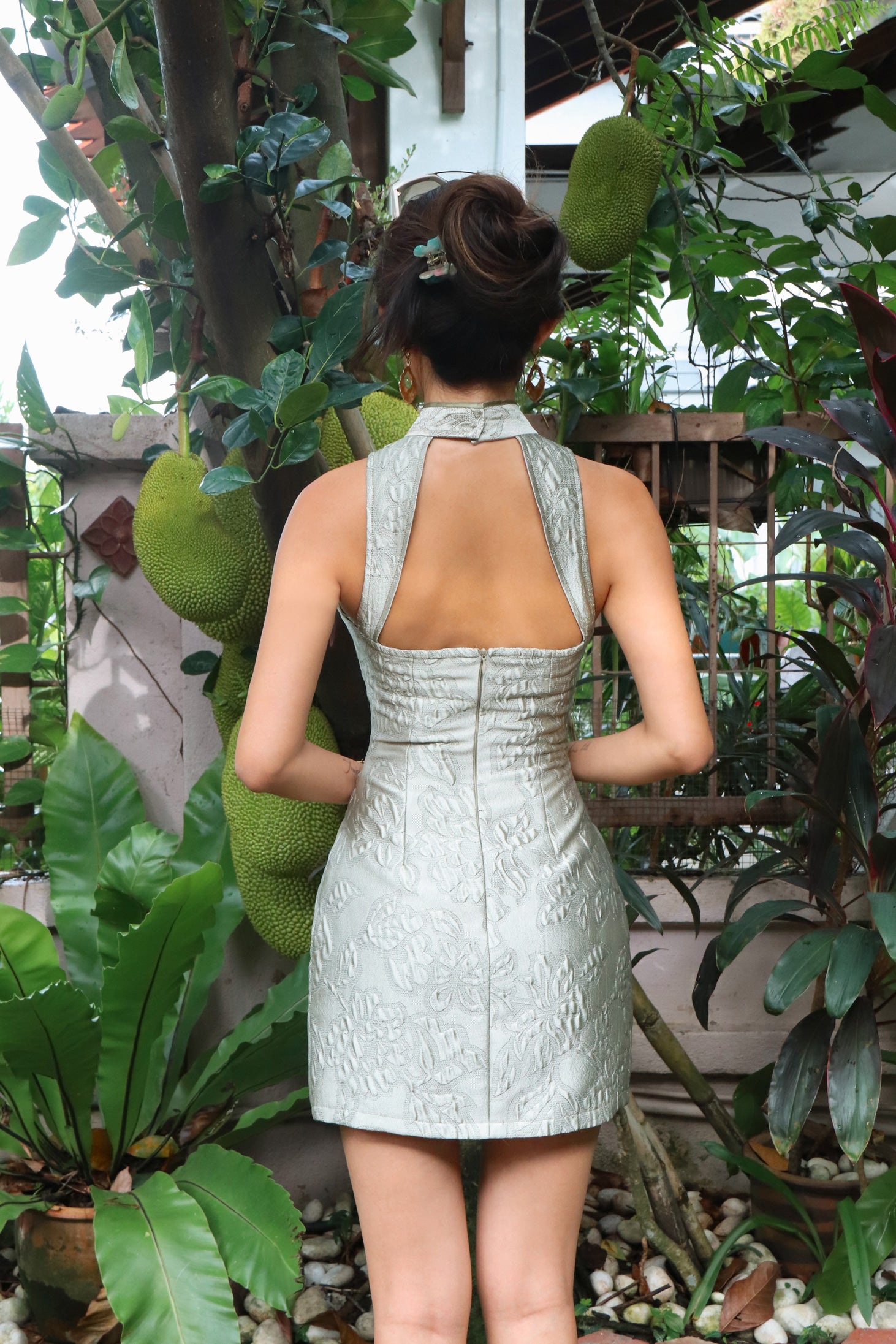 A vision of poise and serenity — the Palais Jade Qipao captures the essence of understated opulence. Crafted in soft sage brocade with sculpted florals that catch the light, this piece whispers old-money grace with a modern silhouette. From elegant dinners to quiet celebrations, it’s the kind of dress that leaves a lasting impression without needing to try.
