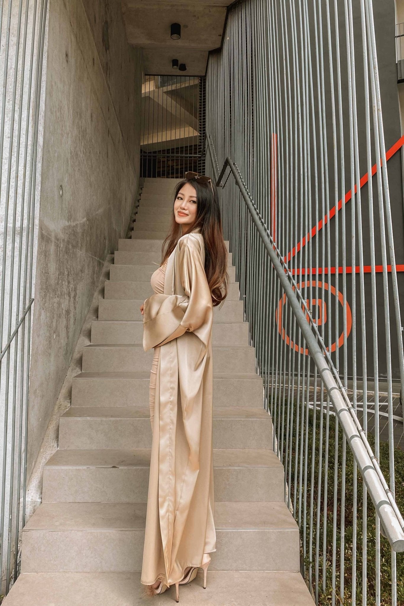 Benazir Satin Longline Cardigan in Taupe - FREYJA