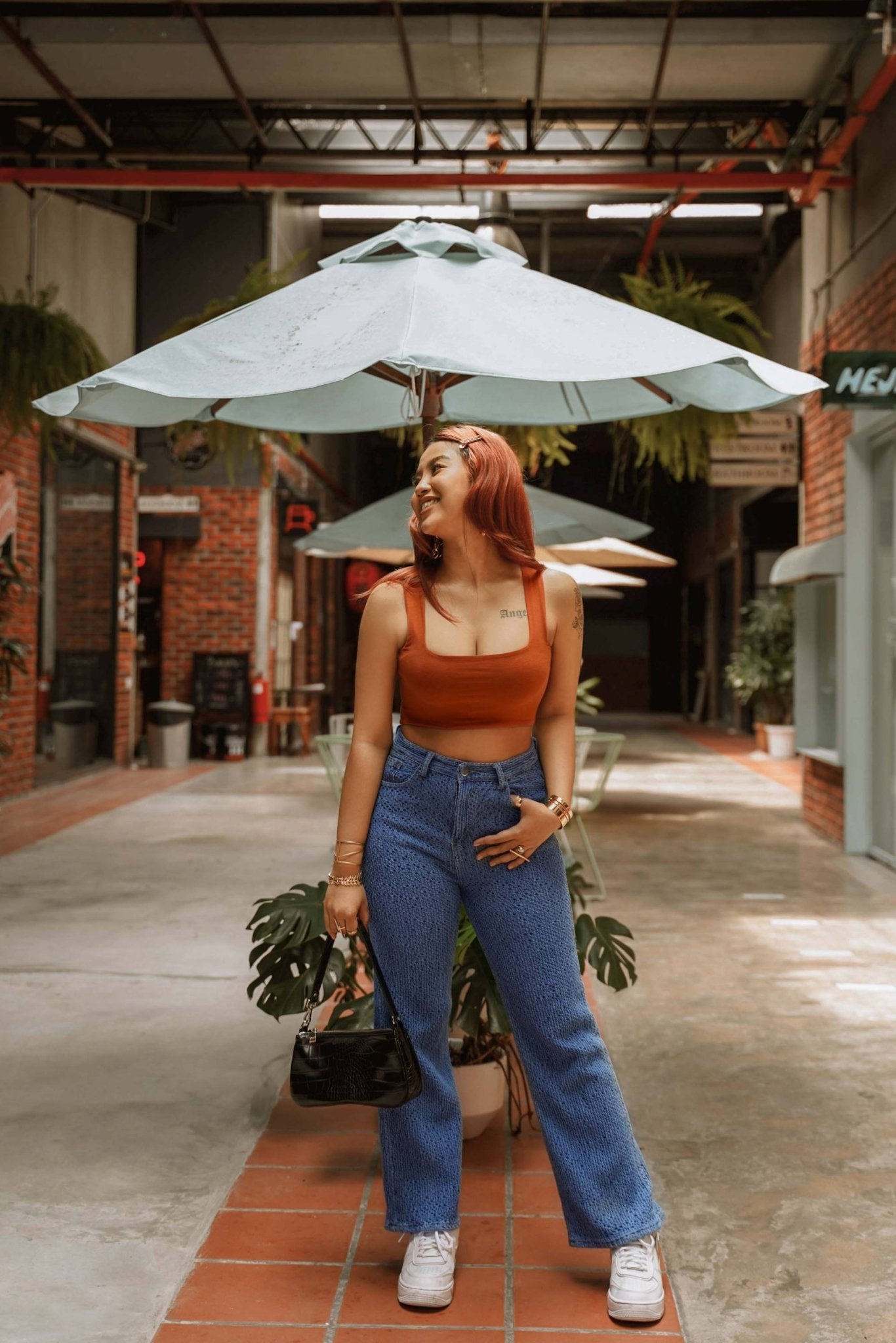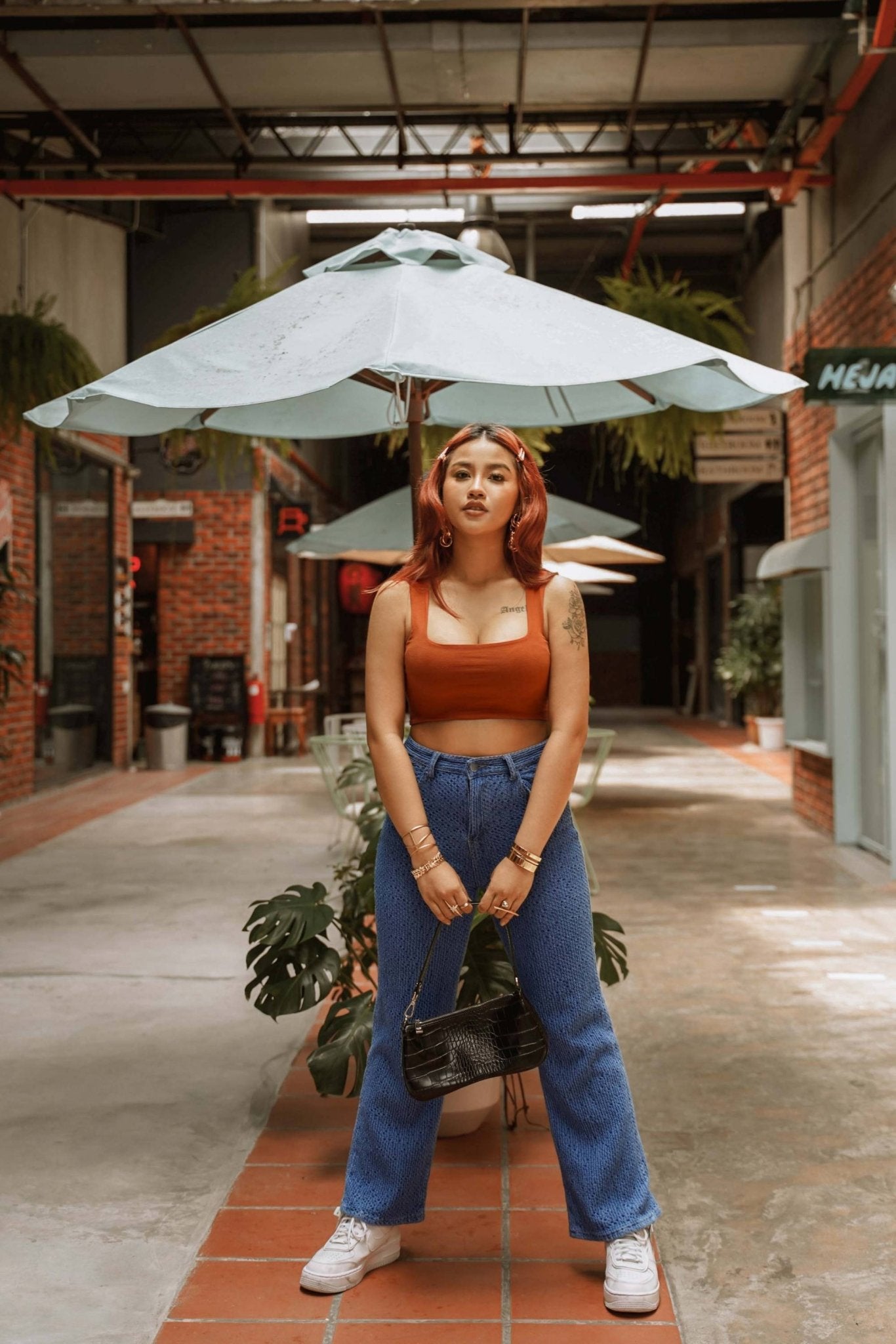 Model Iman is a Size UK10 Top, UK12 Bottom, 168cm tall and wears a Size L.