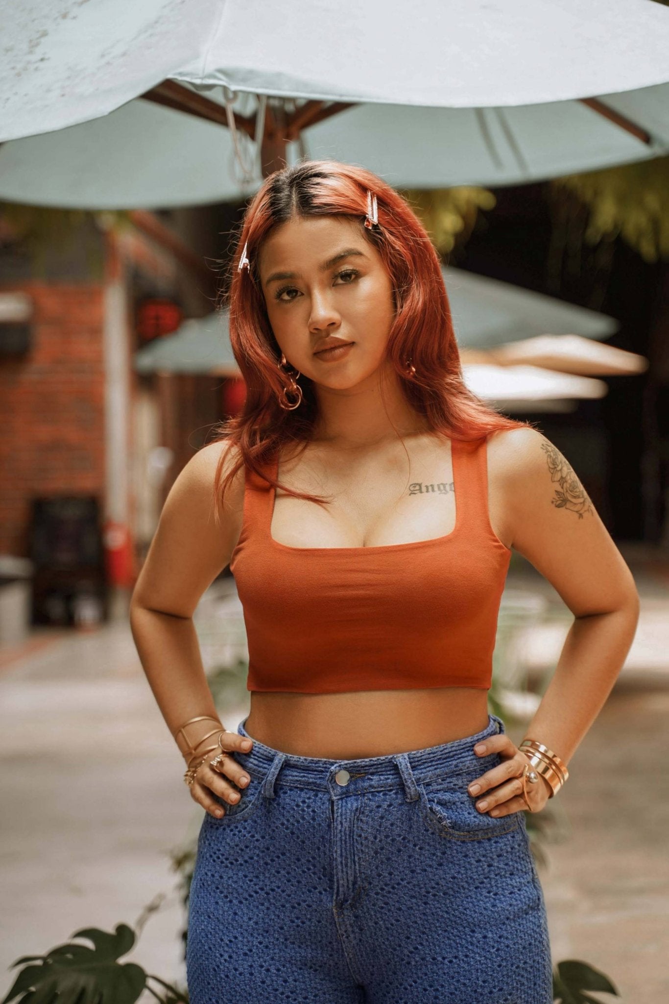 Square neckline, Cropped length, Fitted fit, Double-lined, Highly stretchable.